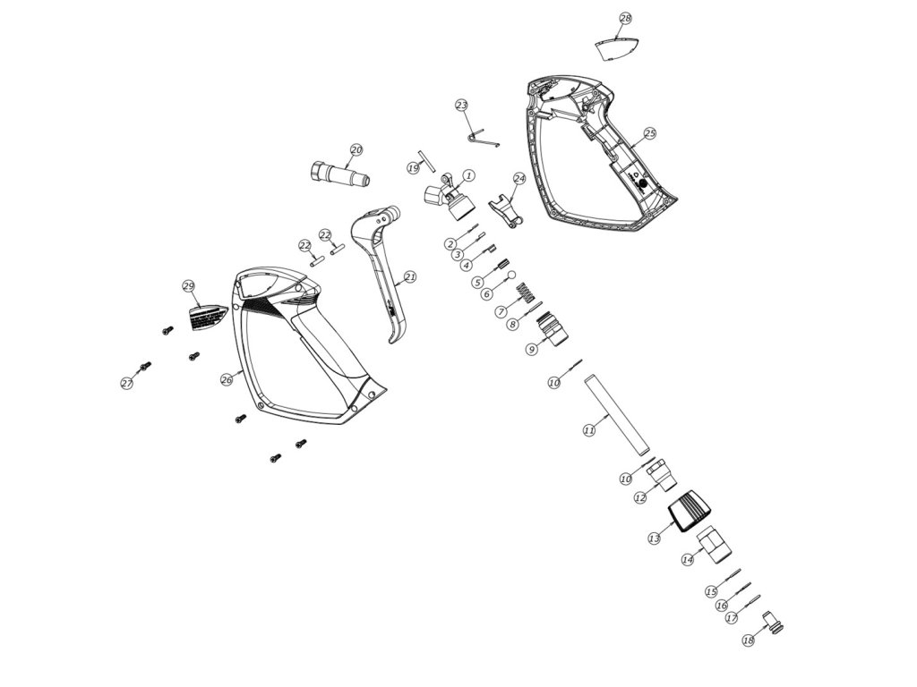 Tato pistole s prodloužením je vyrobena z vysoce kvalitního plastu s mosaznými komponenty. Otočné připojení zabraňuje zalomení hadice. Používá se v průmyslu, tlakových myčkách a myčkách aut.