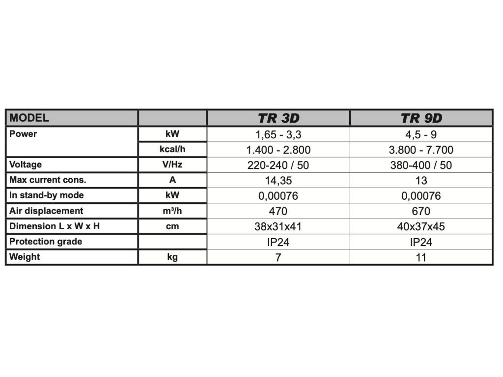 Master TR 9 D je spolehlivé a účinné závěsné elektrické topidlo s ventilátorem, vyznačující se bezpečným a komfortním provozem, flexibilním ovládáním (včetně dálkového) a nízkým hlukem. Je ideální pro rychlé a čisté vytápění různých typů prostor, od průmyslových hal po kanceláře či mobilní provozy.