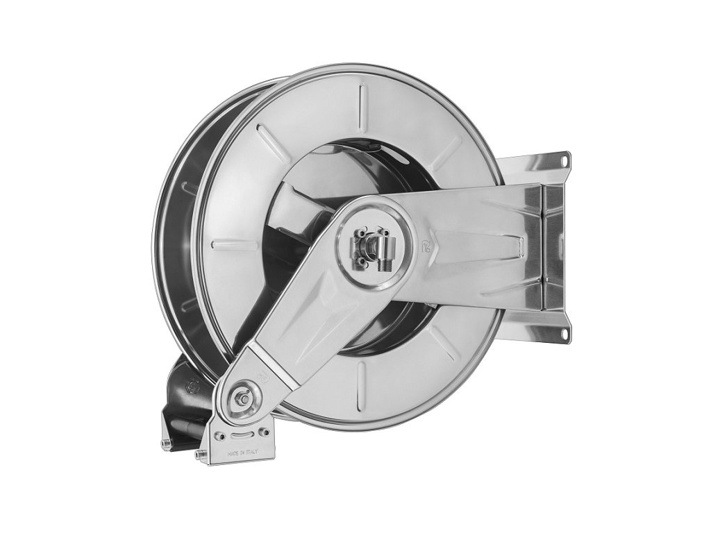 Kvalitní značkový samonavíjecí buben RAMEX HR 3550/400 na vodu, vzduch a chemikálie s automatickým pružinovým zpětným chodem, provedení nerez nebo ocel. Nalezne své uplatnění na benzínových pumpách, automyčkách, dílnách, zemědělství a stavebnictví, a mnoha dalších průmyslových odvětví. Max. tlak: 400 bar. 100% Made in Italy.