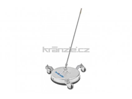 Profesionální rotační čistič v nerezovém provedení s prodloužením a čtyřmi nerezovými opláštěnými kolečky pro snadnější manipulaci. Určený pro čištění ploch proudem vody za pomoci vysokotlakého čisticího přístroje. Kompletní nerezový design kvalifikuje tento výrobek jako absolutně odolný přístroj na trhu. Max. tlak vody: 275 barů, pracovní šíře: Ø 520 mm.