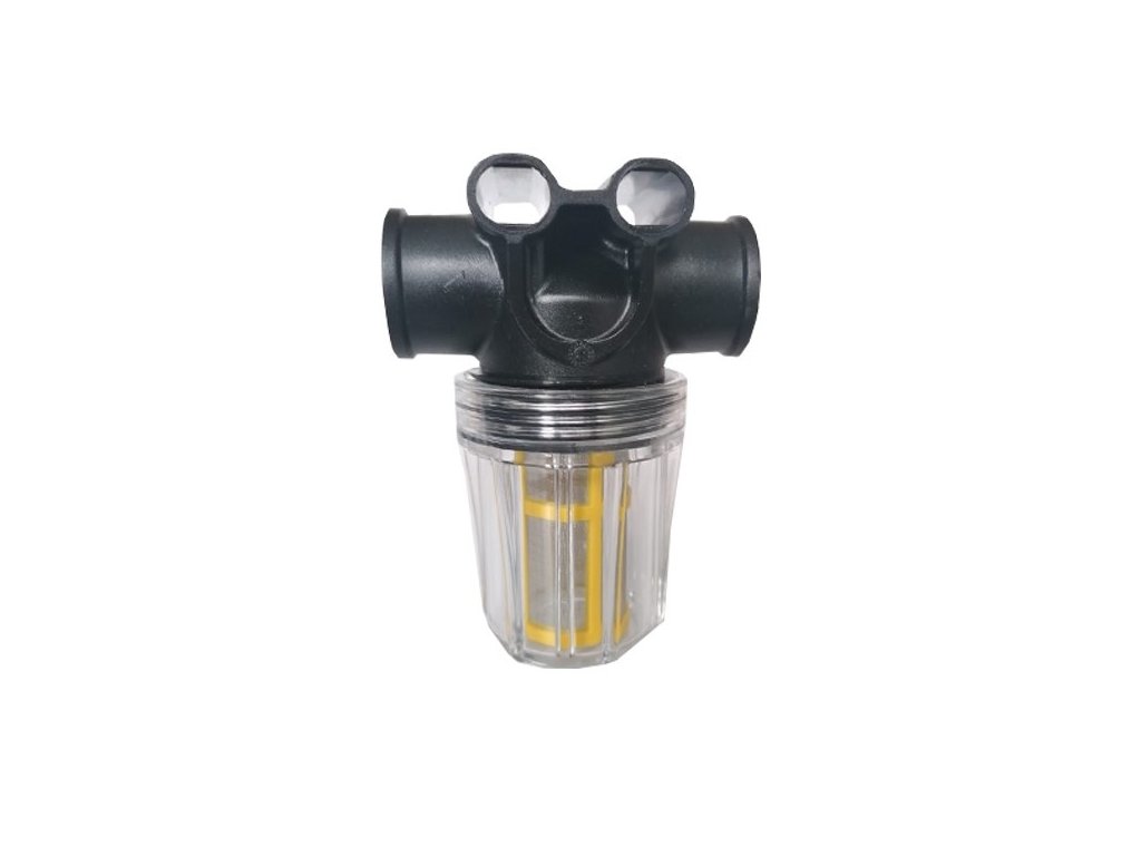Vodní filtr z průhledného plastu vám umožní kontrolovat stupeň znečištění kartuše. Filtr je odnímatelný, což umožňuje opláchnutí filtračního pletiva. Používá se ve vodních instalacích, průmyslu, systémech tlakových myček. Filtr chrání čerpadlo před znečištěním, jako je rez, písek, kámen apod. Vodní filtr plastový předřadný, 3/4" F - 3/4", 80 mikronů (pouzdro vč. kartuše / filtrační vložky)