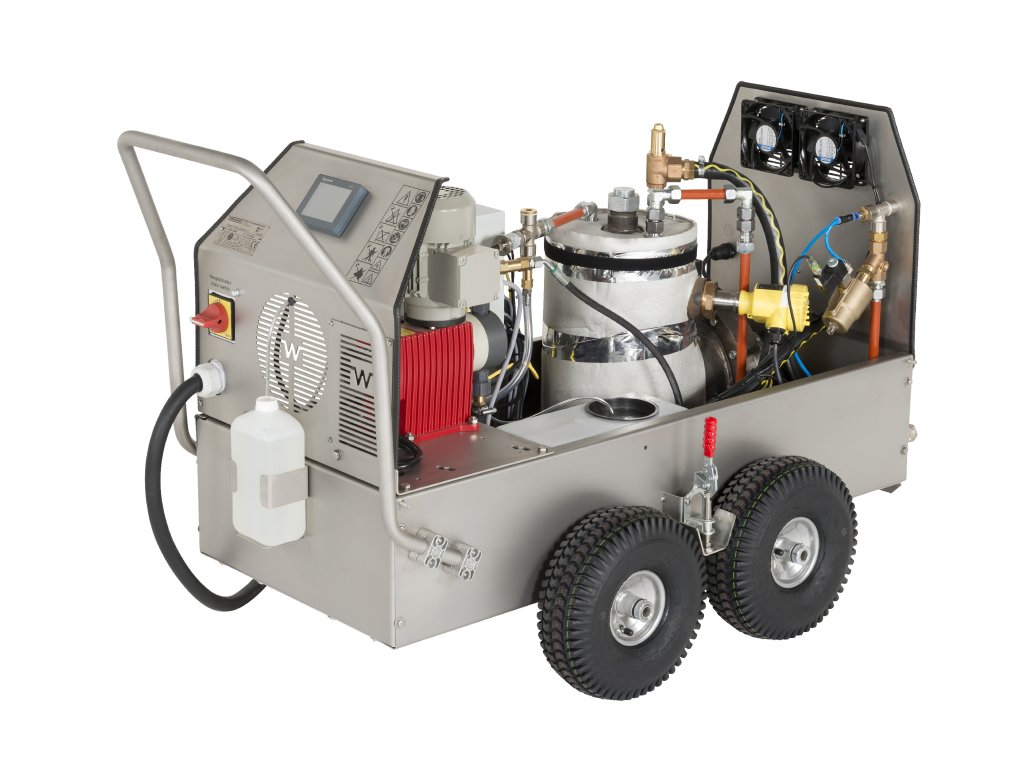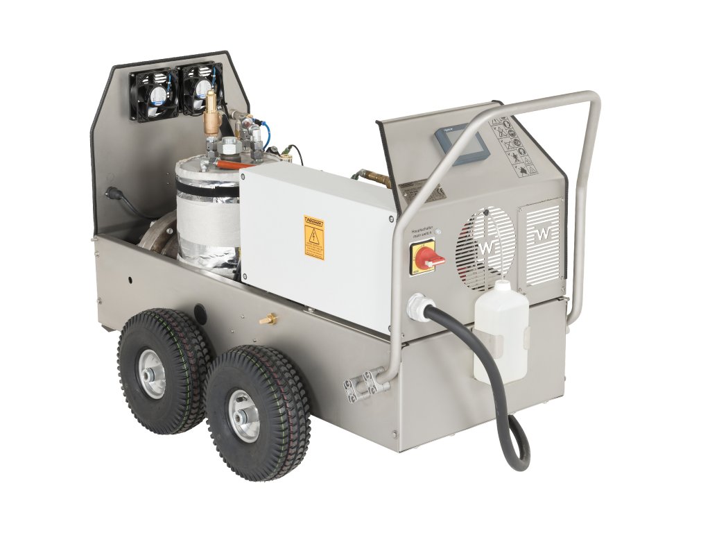 Profesionální parní čistič s elektrickým ohřevem pro čištění dle volby suchou, vlhkou nebo mokrou párou až do 185°C. Přístroj je vyvinutý pro nejvyšší průmyslové nároky a je určen pro nejtvrdší nasazení takřka ve všech průmyslových oblastech při nekompromisním čištění výrobních strojů a techniky, lisů, fréz, CNC center, robotických linek apod. Výborné uplatnění nalezne ve strojírenství, papírenském průmyslu, výrobě plastů, slévárnách, loděnicích, leteckém průmyslu, automobilovém průmyslu a dalších nejrozmanitějších provozech. Revize strojů a opravy techniky lze díky použití malého množství vody realizovat přímo na místě ve výrobní hale, čímž odpadá nutnost drahých demontáží a finančně náročných přerušení provozu.